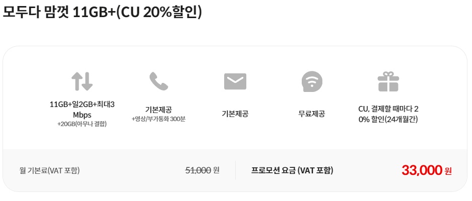 - 매월 통신요금 최대 2만 4천원 할인 (최대 24개월)