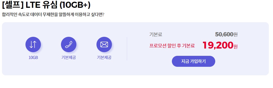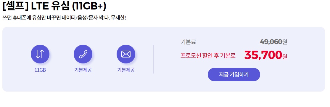 추가 데이터 소진 후 속도: 최대 5Mbps로 무제한